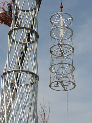 This "first ever" Aeroturbine structural venture included talent from the architectural firm Farr Associates, the structural engineering firm Drucker-Zajdel Inc. and the general contractor George Sollitt Construction Inc. Aerotecture provided the technical overview, special design for the tower components and an upgraded form of the twin rotor Aeroturbine used previously on the Mercy Lakefront SRO project.