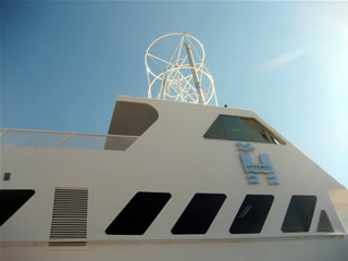 Pier 3, Hornblower Landing, San Francisco, CA This "first ever" hybrid vessel is the only one of its kind in the world to host a zero emission cruise on the beautiful San Francisco Bay. The eco-friendly vessel is powered by solar panels, 2 - 610V Aeroturbines, and grid electricity. The interior is made up of recycled and sustainable materials including the carpeting, the countertops and all the fixtures. The 64 foot vessel serves as a floating envirnmental classroom for educational bay cruises and hosts private charter and events.