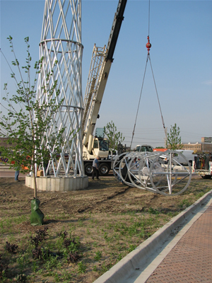 This "first ever" Aeroturbine structural venture included talent from the architectural firm Farr Associates, the structural engineering firm Drucker-Zajdel Inc. and the general contractor George Sollitt Construction Inc. Aerotecture provided the technical overview, special design for the tower components and an upgraded form of the twin rotor Aeroturbine used previously on the Mercy Lakefront SRO project.